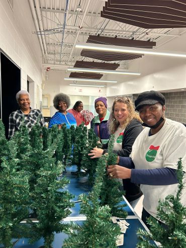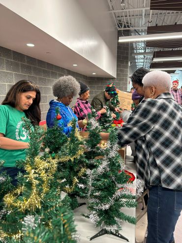 Wrapping trees and customized decorating kits for kids in the community to enjoy!