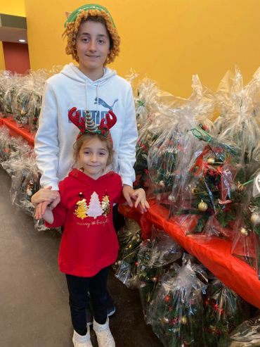 Andrea and Jacob safely dropping off trees and customized decoration kits to kids around Oakland County.